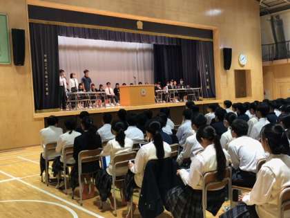 生徒総会がありました。前半は、各委員会からの後期活動目標、活動内容についての討議、議決です。