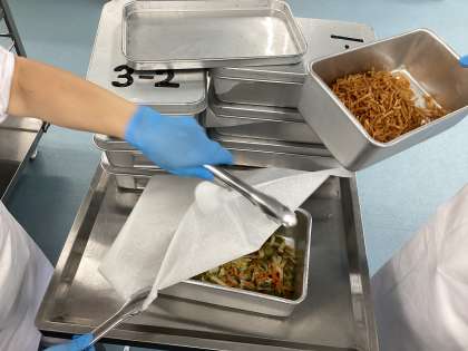 パリパリサラダは、揚げワンタンのクリスピーな食感が教室に届くまで保たれるよう、仕切って配缶しています。