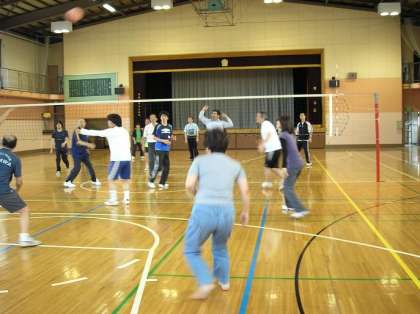 おやじ・おふくろ?・OB・OG、教職員30名ほどの参加者でした。結果は、セットカウント0−2で、教職員チームの敗退でした。