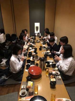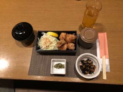 唐揚げ定食、生徒たちは大満足!ガンガン食べています。おひつも空っぽ!?
