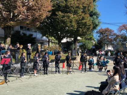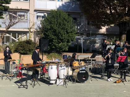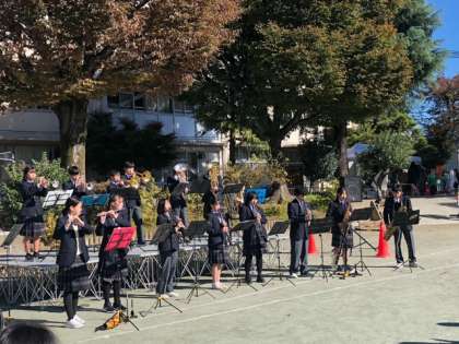 深沢小学校で行われている「深沢ぎんなんまつり」に、吹奏楽部が出演しています!青空の下、楽器の軽快な音が響きます!