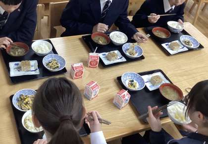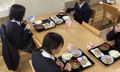 4時間目に授業を行い、授業の後は和食器で給食を食べました。