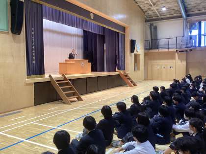 今日は深沢中学校最後の出勤日となるため、全校生徒にむけてご挨拶いただきました。