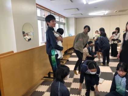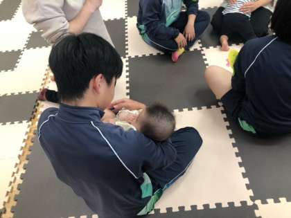 人形とは違って、赤ちゃんには意思もあれば個性もあるので、抱っこもなかなか難しい!でも可愛い赤ちゃんを前に、みんなが優しい笑顔になるのはなぜでしょう。今日もたくさんのママ&赤ちゃんにご来校いただきました。ご協力いただき、ありがとうございました!
