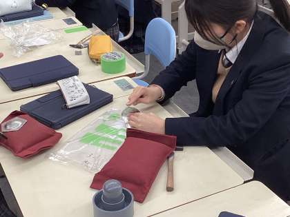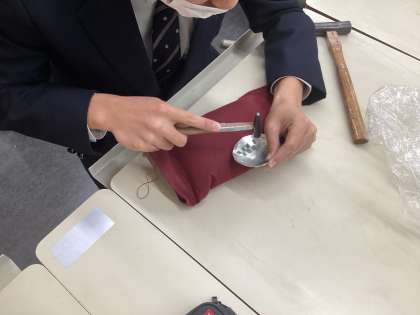 3年生の美術の授業では「錫」を使った器を制作しています。コンコンコン… …と金属を叩く音がうるさい中ですが、皆集中して作品を仕上げています。2月26日からの学芸発表会の展示部門で全ての作品をご覧ください。