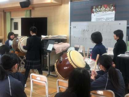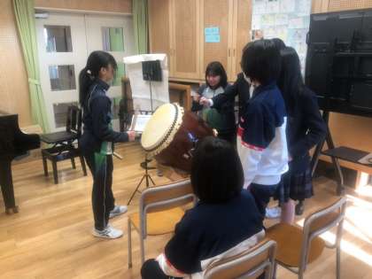 3年生の音楽の時間は「太鼓」に取り組んでいました。二つのリズムを二つの太鼓それぞれで打ち、合わせます。みんな真剣です!