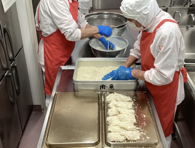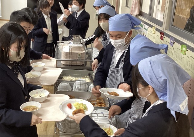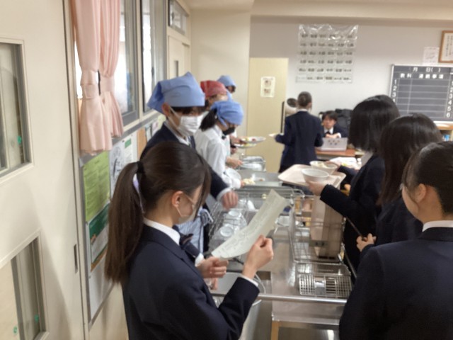 各クラスでは給食委員の生徒が取り仕切りながら配膳作業を行なっていました。