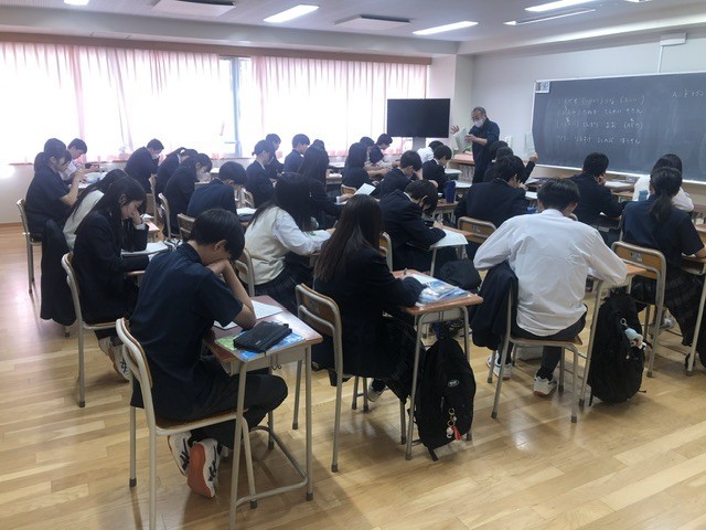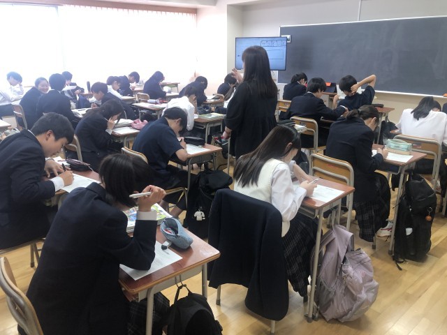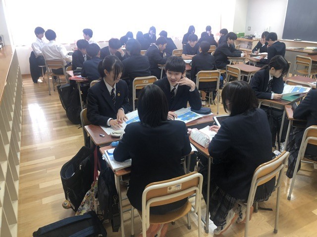 2.3年生の授業の様子です。班で班発表の準備をしたり、プリントを使って学習したり、歴史に関わるクロスワードパズルを解いたり、みんな授業に集中して取り組んでいます!