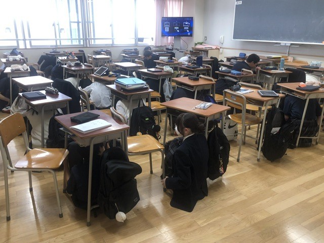 地震を想定した避難訓練を行いました。放送が入ると、みんなまず頭と体を机の下に入れて安全を確保、校庭に出たら避難待機場所まで走ります。地震はいつ何時起こるかわかりません。日頃の訓練をしっかりやっておくことが、もしもの時に役立ちます。「備えあれば憂いなし」ですね。