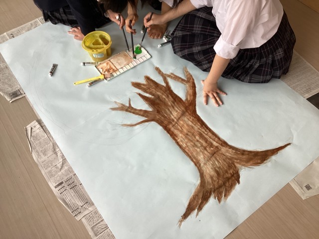 今年も、3年生の目標をつける「決意の木」を美術部の三年生が作成してくれています。