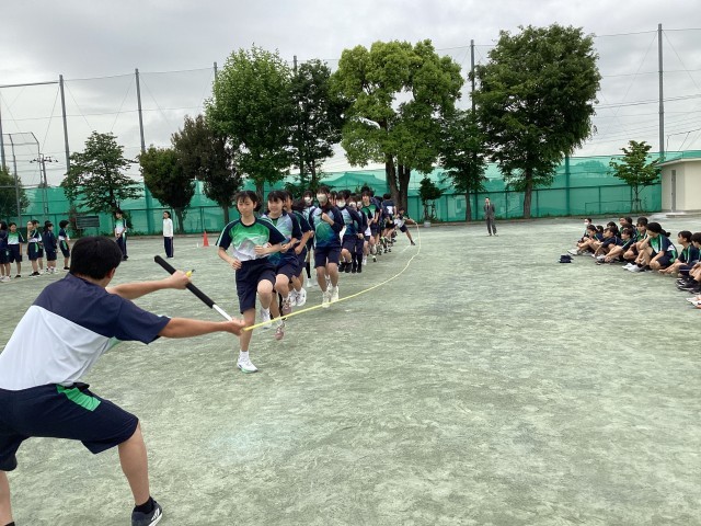 今朝の朝練習は、1年生と3年生が合同で大縄練習に取り組みました。