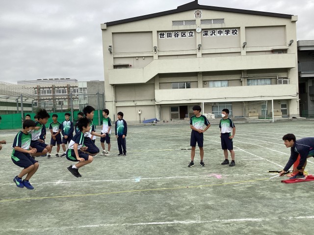 1年生が跳ぶ姿にアドバイスをしたりと、3年生が1年生に教える時間を持ちました。