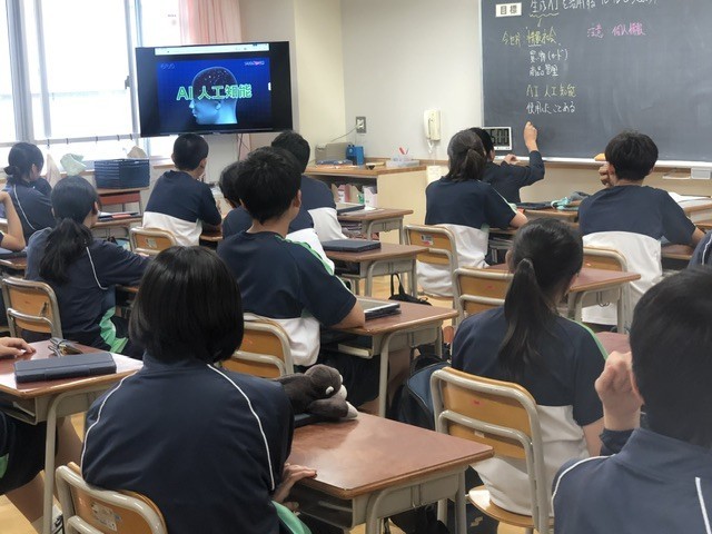 2年生の生徒たちが、AIとは何か、生成AIをどのように活用すべきなのか、注意しなければいけない点は何か、について学んでいます。