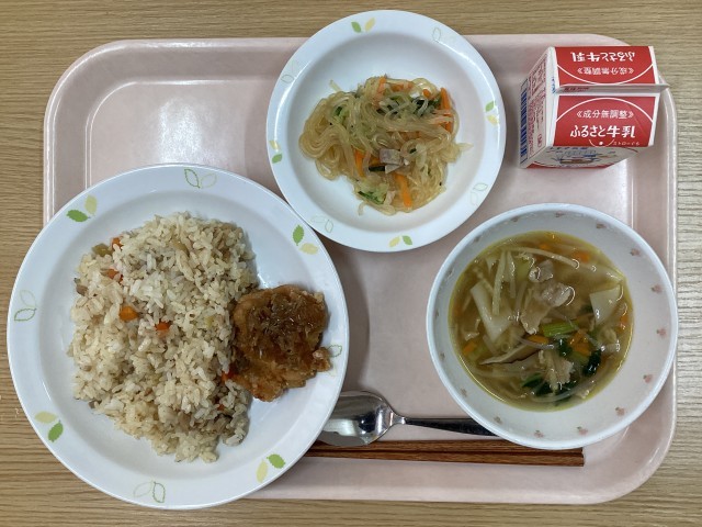 今日の献立・・・チャーハン、油淋鶏、春雨サラダ、ワンタンスープ、牛乳