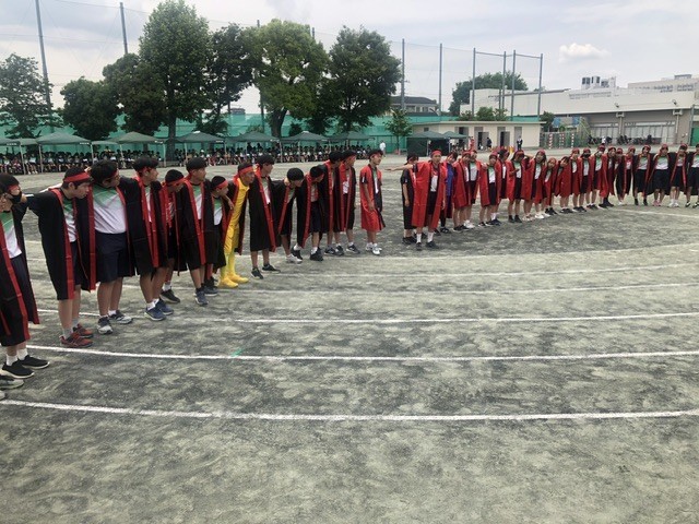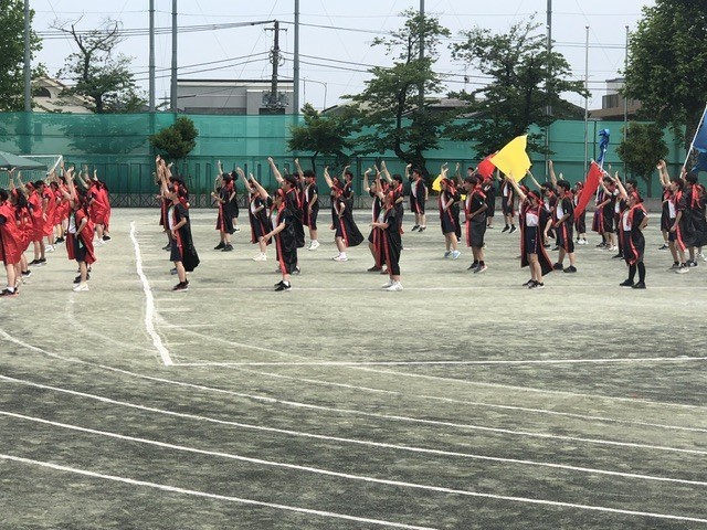 ソーラン節を披露する前には、学年みんなで円陣をつくって気持ちを合わせました。