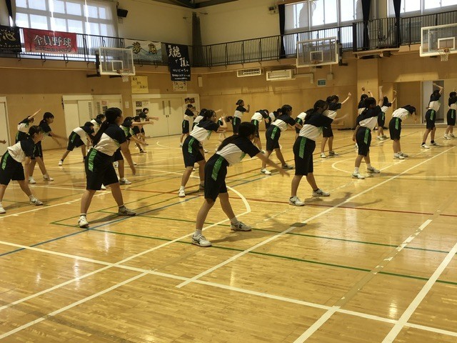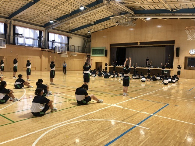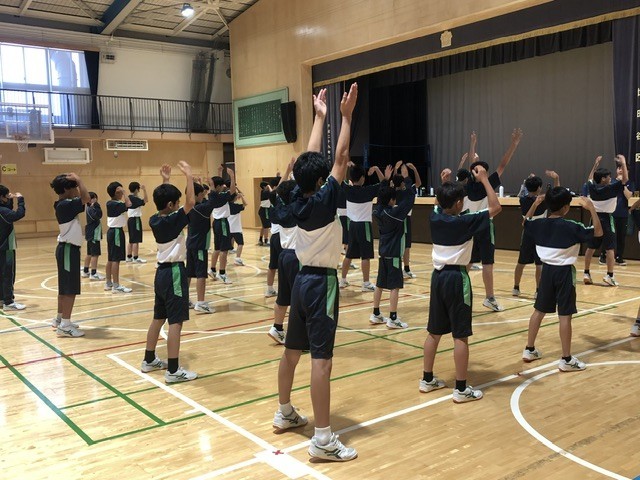 1年保健体育の授業では、ラジオ体操のテストをしていました。ラジオ体操は一つ一つの動作をきっちりやろうとすると、体全体を使う、まさに全身運動です。さあ、うまくできるかな。