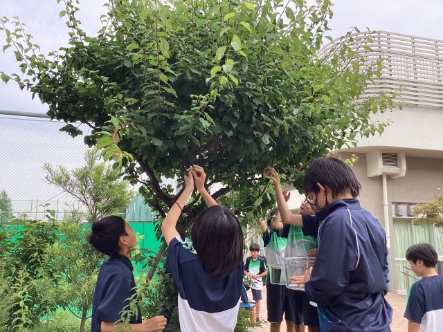 毎年、学校の中庭の梅の木の梅もぎをし、