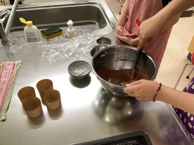 授業では、ココア蒸しパンの調理を通して、