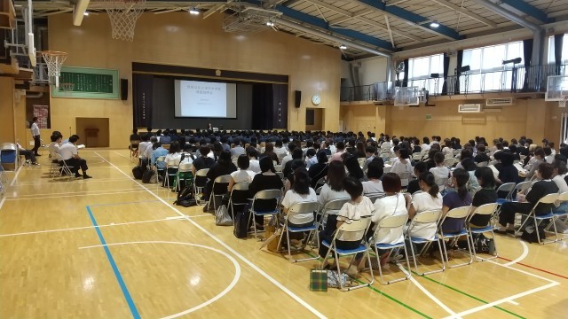 本日五時間目、本校アリーナでは、第1回進路説明会が行われました。