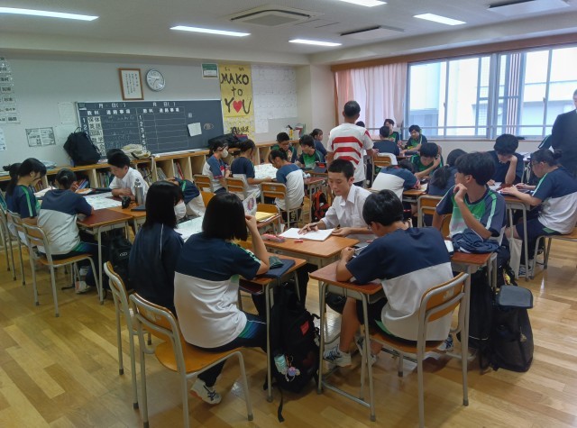 3年生が修学旅行の班行動について話し合いをしています。どんなところを訪れるのか、楽しみですね!