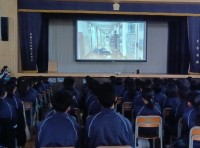 1学年集会では、学級委員が作成した「学校生活あるある動画」を見ながら、廊下や教室...