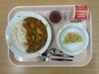 今日の献立・・・ポークカレーライス、きゃべつサラダ、ぶどうゼリー、牛乳 今日は...