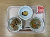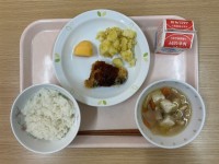 今日の献立・・・チキンライス、ポトフ、マカロニサラダ、焼きりんご、牛乳 今日は...