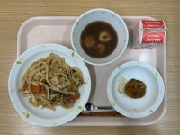 今日の献立・・・焼きうどん、大根もち、白玉しるこ、牛乳 今日は図書コラボ給食で...