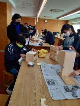 6時間目1年生の技術では、木工室で作品の塗装に入りました。製作過程をiPadで撮...
