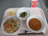 *今日の給食* ・親子丼 ・ごまあえ ・キャベツと生揚げのみそ汁 ・焼きりん...