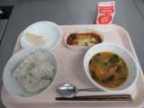 *今日の給食* ・ごはん ・チーズダッカルビ ・テンジャンチゲ ・梨 ・牛乳...