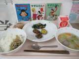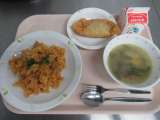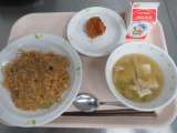 *今日の給食* ・肉みそ焼きそば ・白菜とベーコンのスープ ・いがぐり揚げ ...