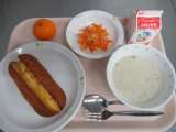 *今日の給食* ・たまごドック ・にんじんサラダ ・白インゲン豆のポタージュ...