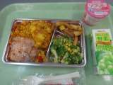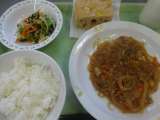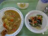 本日は今年度最後のカレーライスです。今日はご飯にクミンをいれて少し変わったライス...
