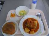 *今日の給食* ・ミルクパン ・ロールキャベツ ・コーン入りフレンチサラダ ...