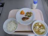 *今日の給食* ・麻婆豆腐 ・わかめスープ ・抹茶ケーキ ・牛乳 *主な...