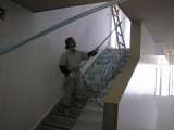 体育館の校庭側階段(1階〜3階)の壁面を施設課用務班の方々と学校主事でペンキを塗...