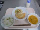 *今日の給食* ・バニーチャウ ・粒マスタードのコールスロー ・お米のポター...