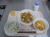 *今日の給食* ・青菜ごはん ・新じゃがのうま煮 ・キャベツと生揚げのみそ汁 ...