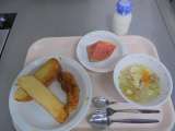 *今日の給食* ・フィッシュサンド ・チーズ入り卵焼き ・ワンタンスープ ・...