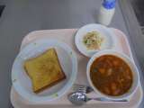 *今日の給食* ・フレンチトースト ・ビーンズシチュー ・ツナサラダ ・牛乳...