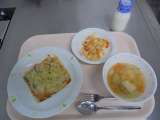 *今日の給食* ・ドリア ・エビ入りサラダ ・ペイザンヌスープ ・牛乳 *...