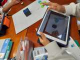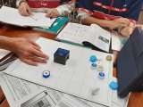 実験の様子を動画撮影して、測定値を確認している班もあれば、台紙に印をつけてから...