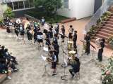 吹奏楽部が中庭でミニコンサートを行っています。1年生デビューです!軽快な音楽に思...