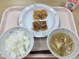 *** 献立 *** ご飯 生揚げの生姜焼き 真砂和え 豚汁 牛乳