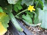 校庭で栽培しているキュウリと糸瓜とゴーやが成長し、キュウリは実をつけ始めました。...