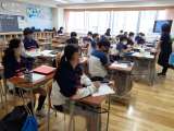 2年生英語の授業の一コマです。 花本先生の質問に対して戸惑いながらも元気よく答え...