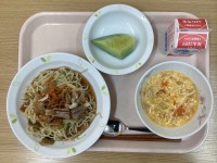 今日の献立・・・冷やし中華そば、トマト入り卵スープ、メロン、牛乳 今日のデザート...