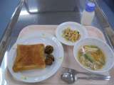 *今日の給食* ・シナモントースト ・野菜スープ ・豚肉のコーンフレーク揚げ ...
