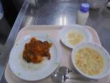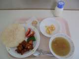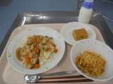 *今日の給食* ・あんかけチャーハン ・じゃがナムル ・マーラーカオ ・牛乳 ...
